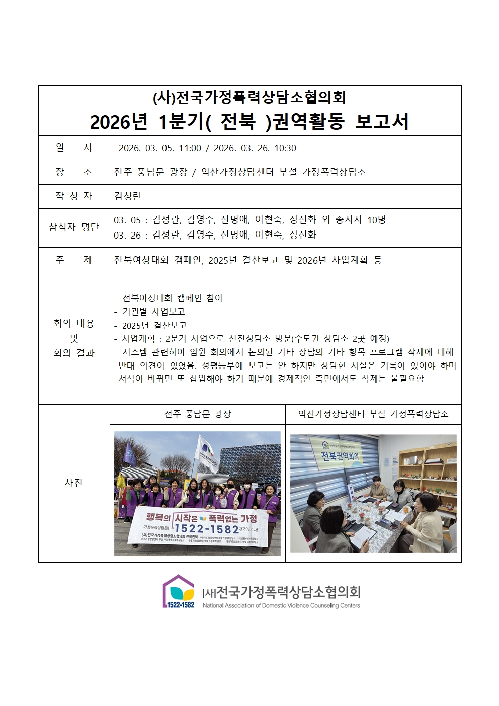 1ºÐ±â Àü³²±Ç¿ª Ȱµ¿º¸°í¼